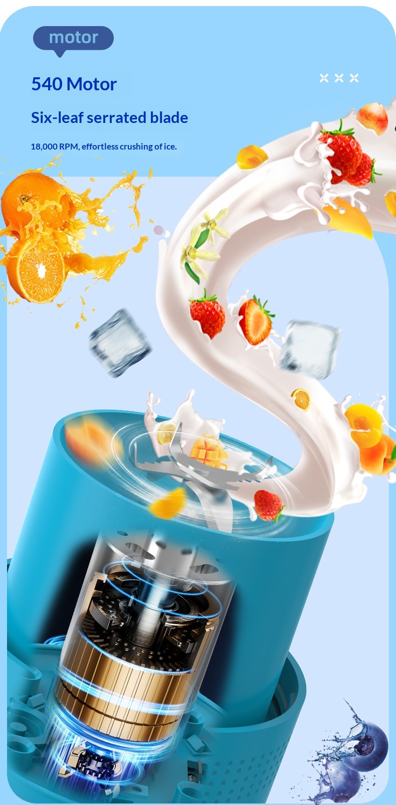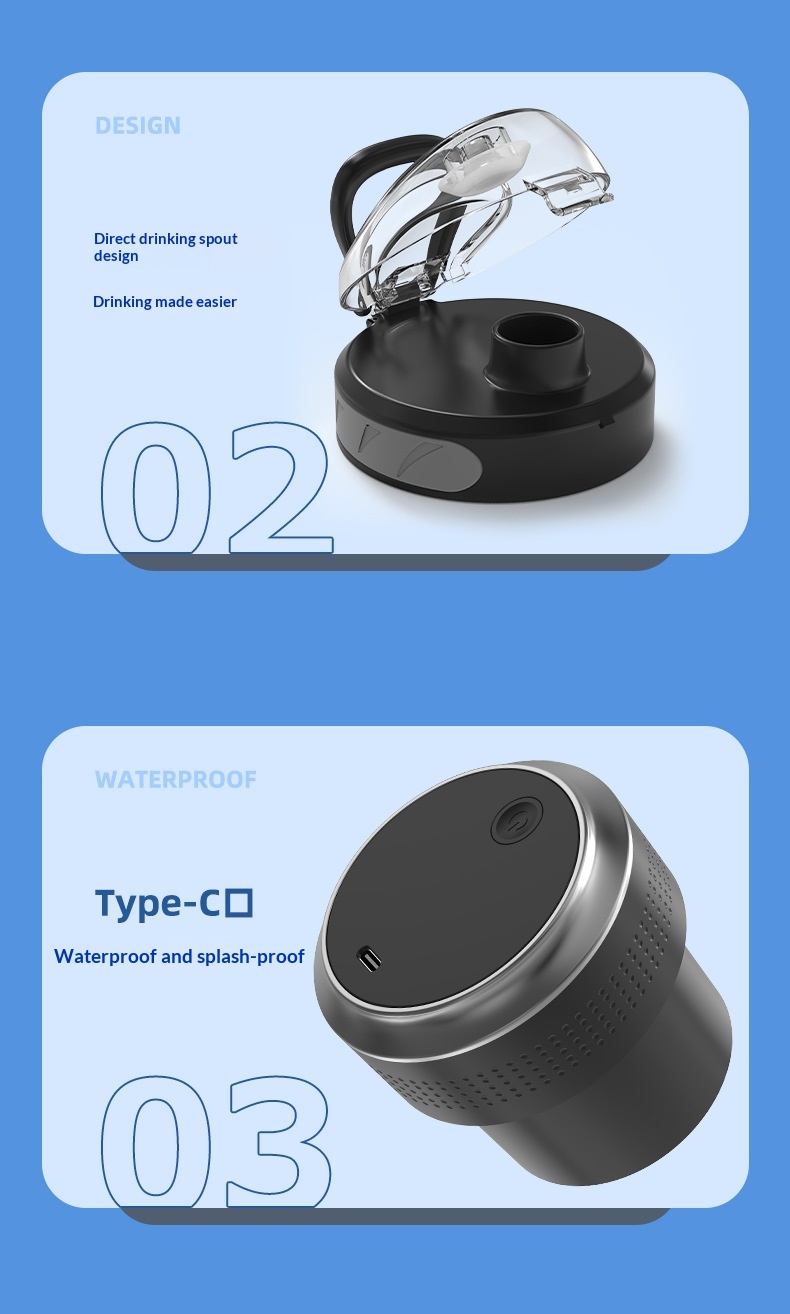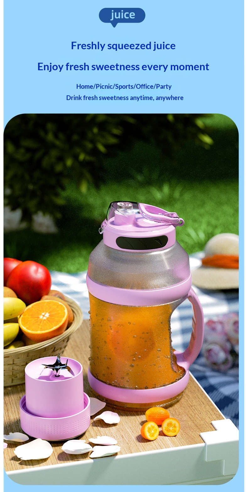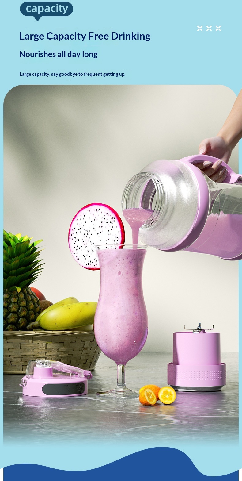 Package contents: Juicer + cup lid + charging cable + instruction manual