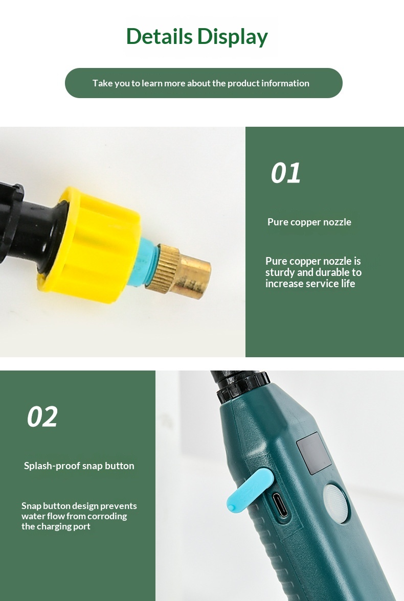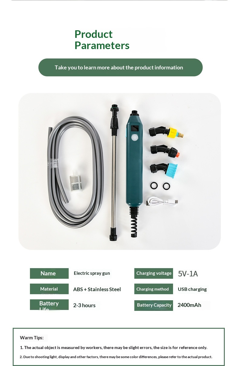 Specifications: 3.7V spray gun + 2-meter hose (with battery level indicator), 3.7V spray gun + 3-meter hose (with battery level indicator), 3.7V spray gun + 5-meter hose (with battery level indicator)